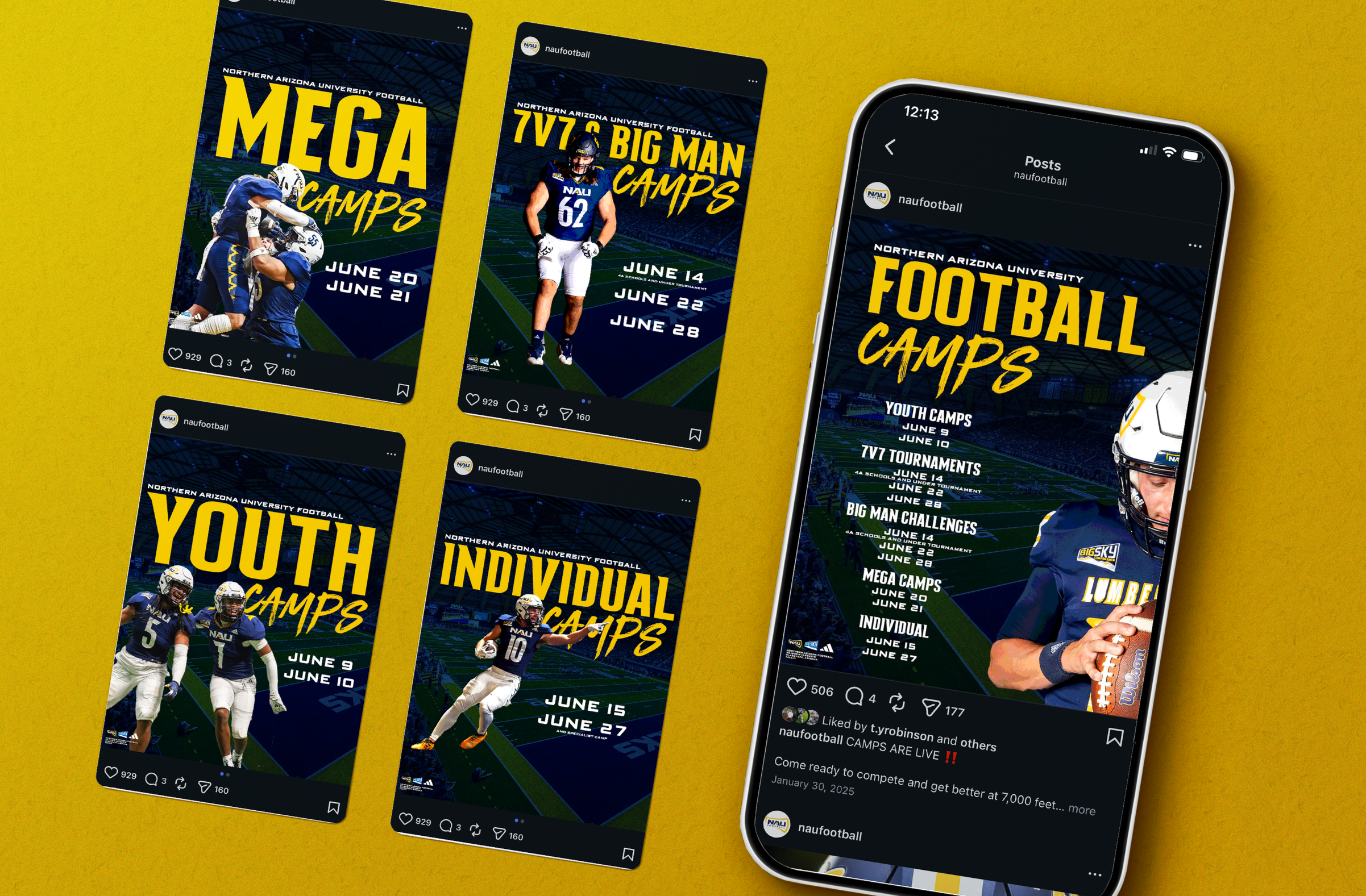 I worked for NAU Athletics during all 4 years I spent at Northern Arizona University. During this time I was primarily a photographer, but I also had to opportunity to assist with graphic design. I was able to create my own graphics for social media and website use, as well as assisting in tasks such as changing templates for each game, creating cutouts, and assisting in other design needs. Here are some graphics I created during my time in the department.